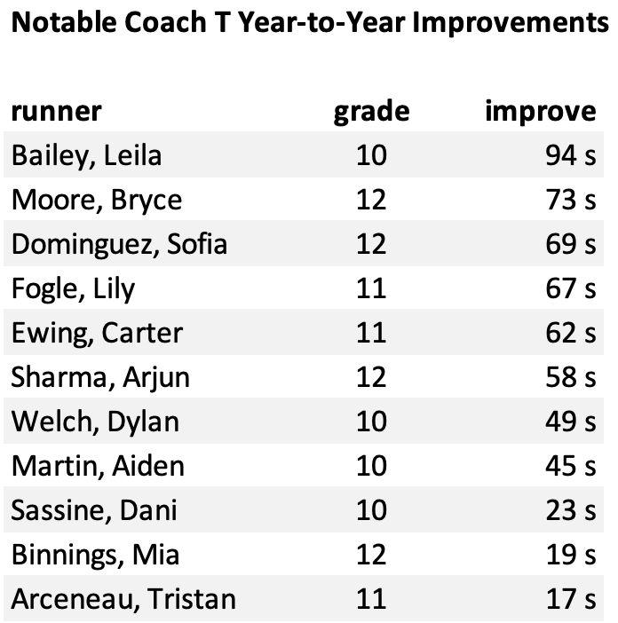11 Lovejoy varsity runners saw significant (15 seconds or more) improvement over their times at this